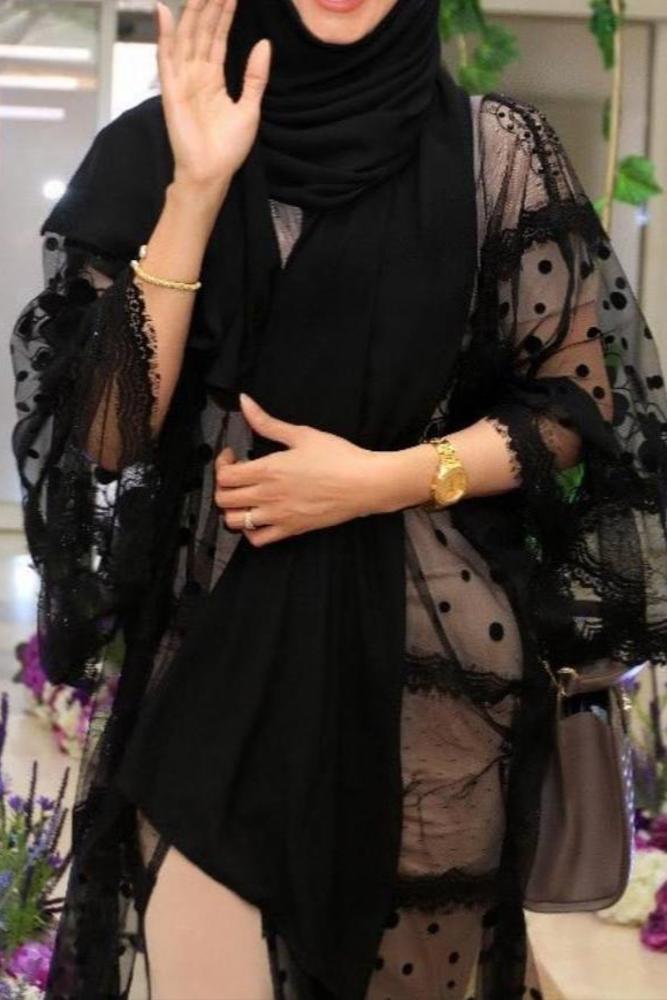 كما يمكنك الظهور بعباية سوداء مصممة بأكمام واسعة ومزينة بأطراف الأكمام والعباية بقماش من الدانتيل الناعم لمظهر مناسب للمناسبات والحفلات البسيطة، وللمشاوير اليومية أو للعمل يمكن أن تطلي بعباية سوداء مصممة بأكمام مُكملة بمطاط وقماش الدانتيل مع خطوط طولية من قماش الدانتيل في المنتصف لتمنحك إطلالة مميزة.