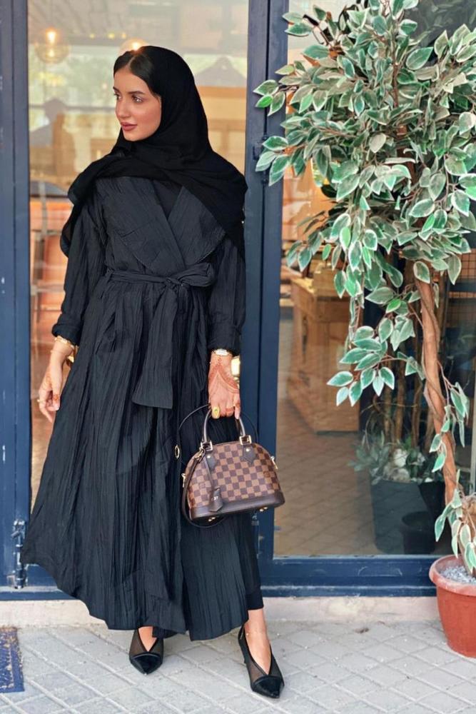 خولة المراغي، من أكثر مدونات الموضة والإعلاميات اعتمادًا على العبايات الخليجية في إطلالاتها، ومن وحي حسابها على إنستجرام، الذي يتابعها فيه أكثر من ٨٠٠ ألف شخص، استوحينا لكِ منها عدة إطلالات شتوية بالعباية حيث اختارت عباية سوداء من قماش الكتان المزين بحزام للخصر وقصة معطف البليزر في الأعلى.