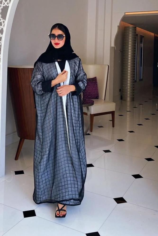 وأكملت مظهرها بإكسسوارات حيادية الألوان لتمنحها إطلالة مناسبة لموضة كل شتاء، ونسقت في الإطلالة الثانية عباية زهرية مزينة بقماش الدانتيل في الأطراف مع حذاء بكعب شفاف لخيار أنثوي أنيق، كما أطلت بعباية بيضاء مزينة بخطوط سوداء وبقماش شفاف أسود مع حجاب وحذاء باللون الأسود لإطلالة راقية، وظهرت بعباية كحلية مزينة بجيوب مطرزة بالفضي مع حذاء فضي وحقيبة من الجلد الكحلي، وفي الإطلالة الخامسة ارتدت عباية مصممة بقسمين، جاء الأول في الجزء العلوي باللون الأسود، أما الآخر فكان باللون الرمادي في الأسفل، وأكملت مظهرها باللونين الأسود والرمادي لخيار ناعم ومناسب للمشاوير اليومية.