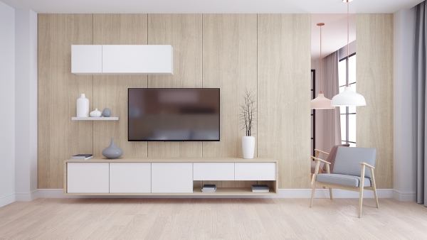 يُختار الخشب الخاص بالديكورات نسبة لألوان المفروشات في الغرفة، بعيدًا من الخشب الصلب (الجوز والسنديان والموغانوم) عالي التكلفة والمُستخدم في صناعة الأثاث. أمَّا الشاشات فهي عبارة عن لوحات، ويناسبها خشب الـ"إم دي إف" أو ذلك السويدي. ويمكن علاج الخشب، من خلال طلائه بأي لون، أو استعمال قشرة الخشب بأي لون خشبي، لا سيَّما الأسود والرمادي ودرجات البنِّي كافَّة. وفي حال اختيار الألوان الزاهية، كالأحمر أو البرتقالي أو أي لون غير الألوان الخشبية. لا داعي لكسوة الشاشة بقشرة خشب.