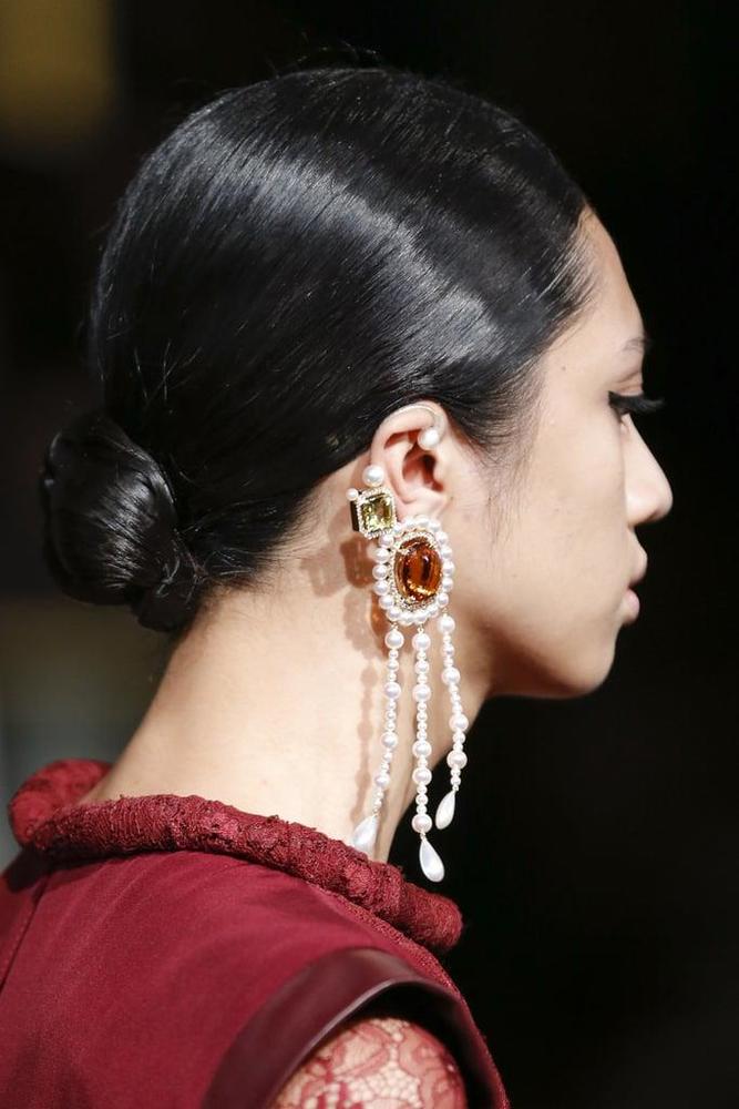 وقدمت ماركة Prabal Gurung أقراط مرصعة بحبّات اللؤلؤ مع أحجار باللون البرتقالي والأصفر تزيد من سحرها.