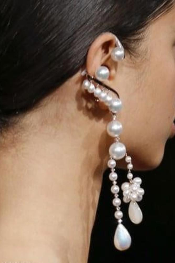 أيضاً برزت صيحة الأقراط المرصعة بحبّات اللؤلؤ الأبيض التي تمنح المرأة إطلالة رومانسية ناعمة مثل أقراط كارولينا هيريرا Carolina Herrera، جاسون وو Jason Wu، Prabal Gurung، وتوري بورش Tory Burch.