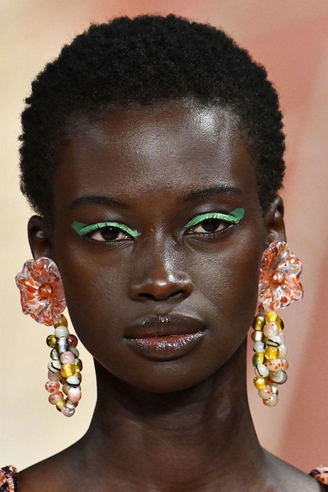 من ماركة Brandon Maxwell، اخترنا لكِ أحدث أشكال أقراط مرصعة بالأحجار الكريمة، وهي الأقراط الطويلة التي تجمع بين عدة أحجار بألوان حيوية متنوعة مع الإطار الذهبي الذي يسكبها فخامة.