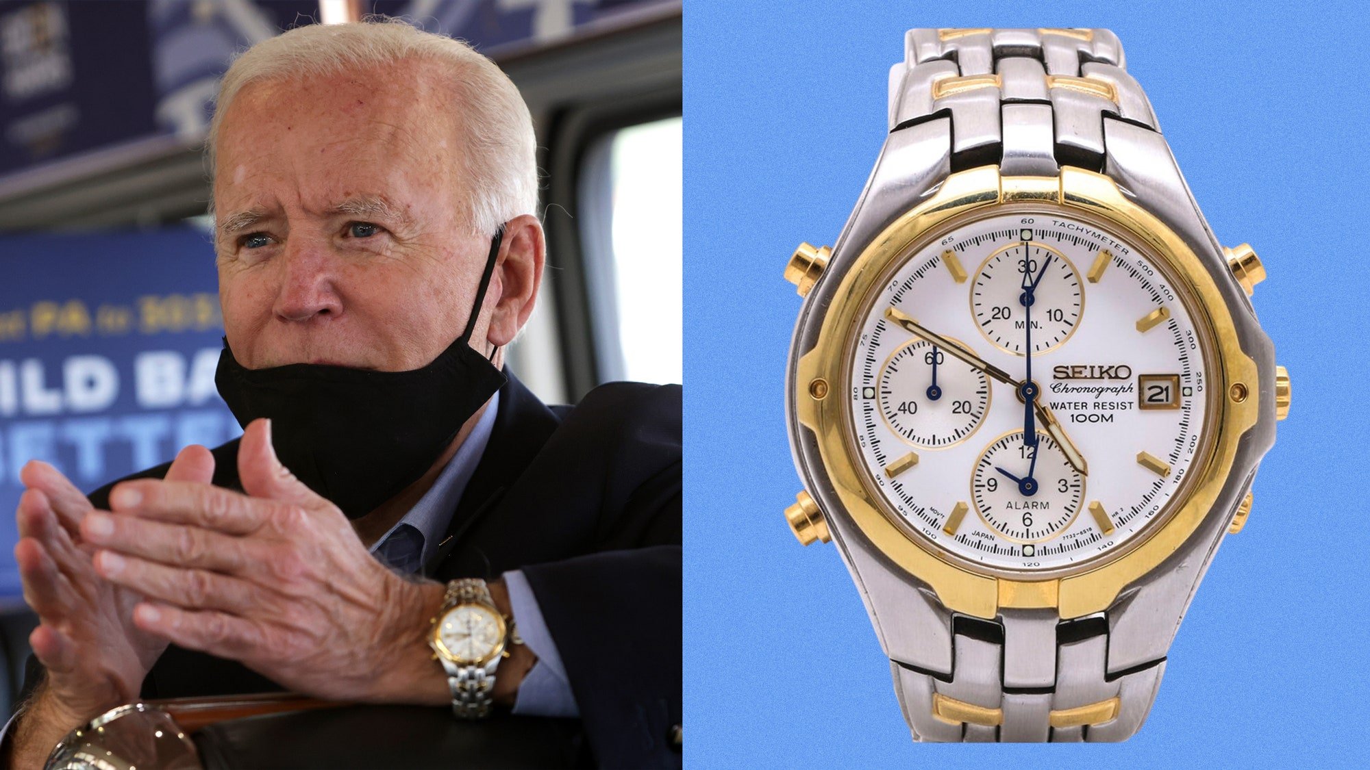 في أول ظهور له كرئيس مُنتخب صعد بايدن على المنصة وعلى معصمه الساعة سيكو 7T32-6M90، وكان هذا غريبا نوعًا ما، خاصة أنه منذ كان نائبا للرئيس الأسبق أوباما كان يرتدي ساعات أوميجا.