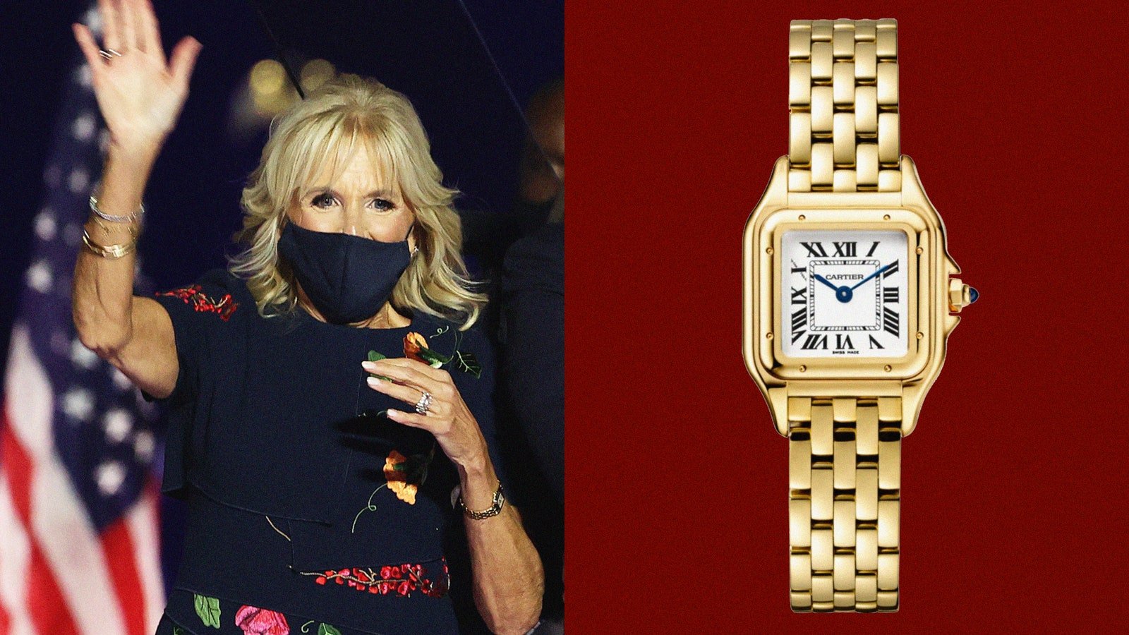 انضمت جيل بايدن إلى نادي النخبة بارتدائها الساعة الكارتييه، وتعتبر جاكي كينيدي من أشهر زوجات الرؤساء اللائي ارتدين ساعات كارتيه، وكانت ساعتها موديل تانك والتي اشترتها نجمة تليفزيون الواقع كيم كارداشيان في مزاد علني.
