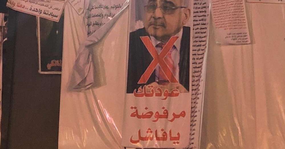 ووصف عبد المهدي برئيس لحكومة القناصين في ظل سقوط المئات قتلى والآلاف جرحى خلال الاحتجاجات التي شهدها العراق، مطالبا بمحاسبته ومؤكدا أن المحتجين لن يتنازلوا عنه.