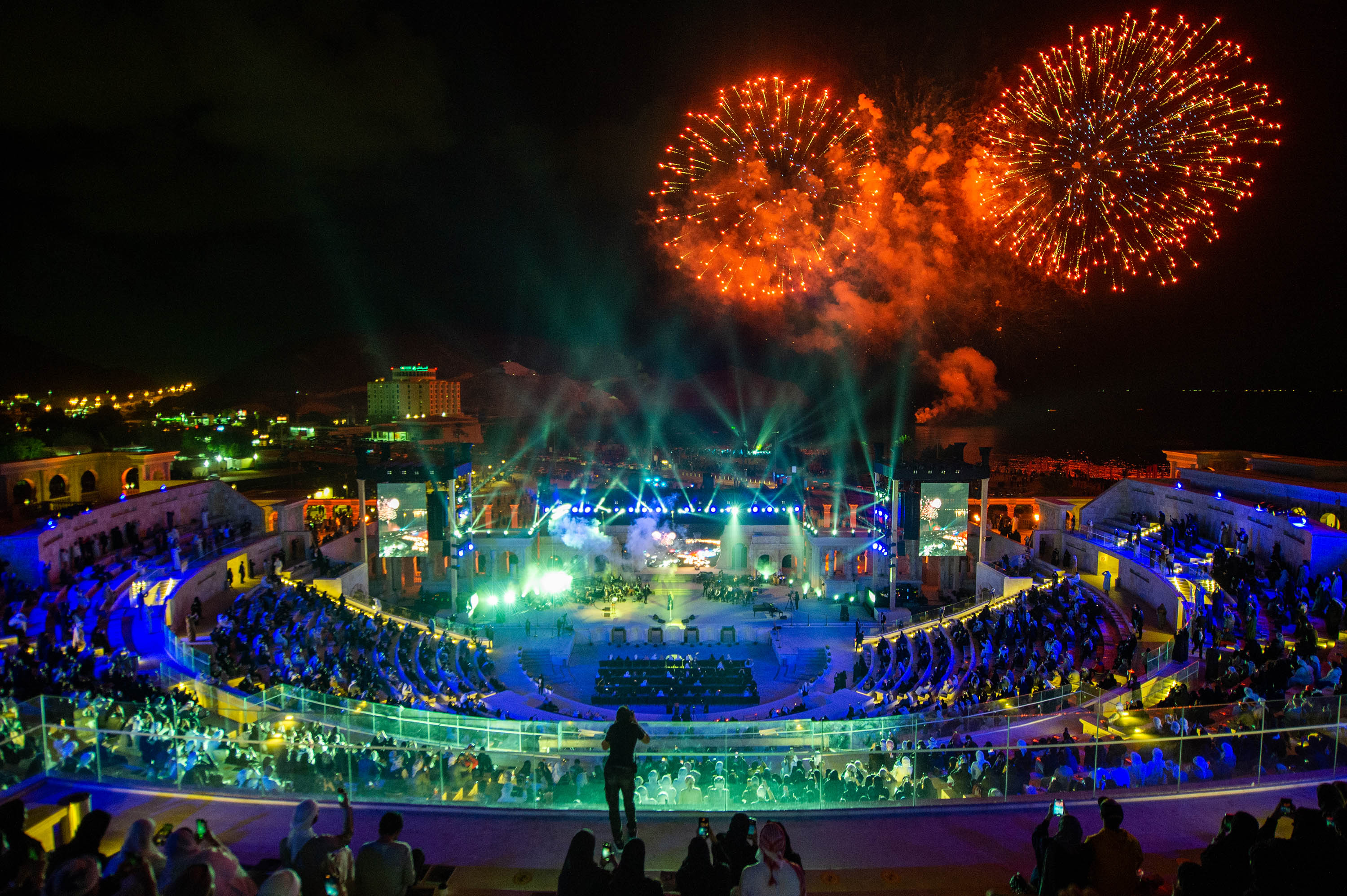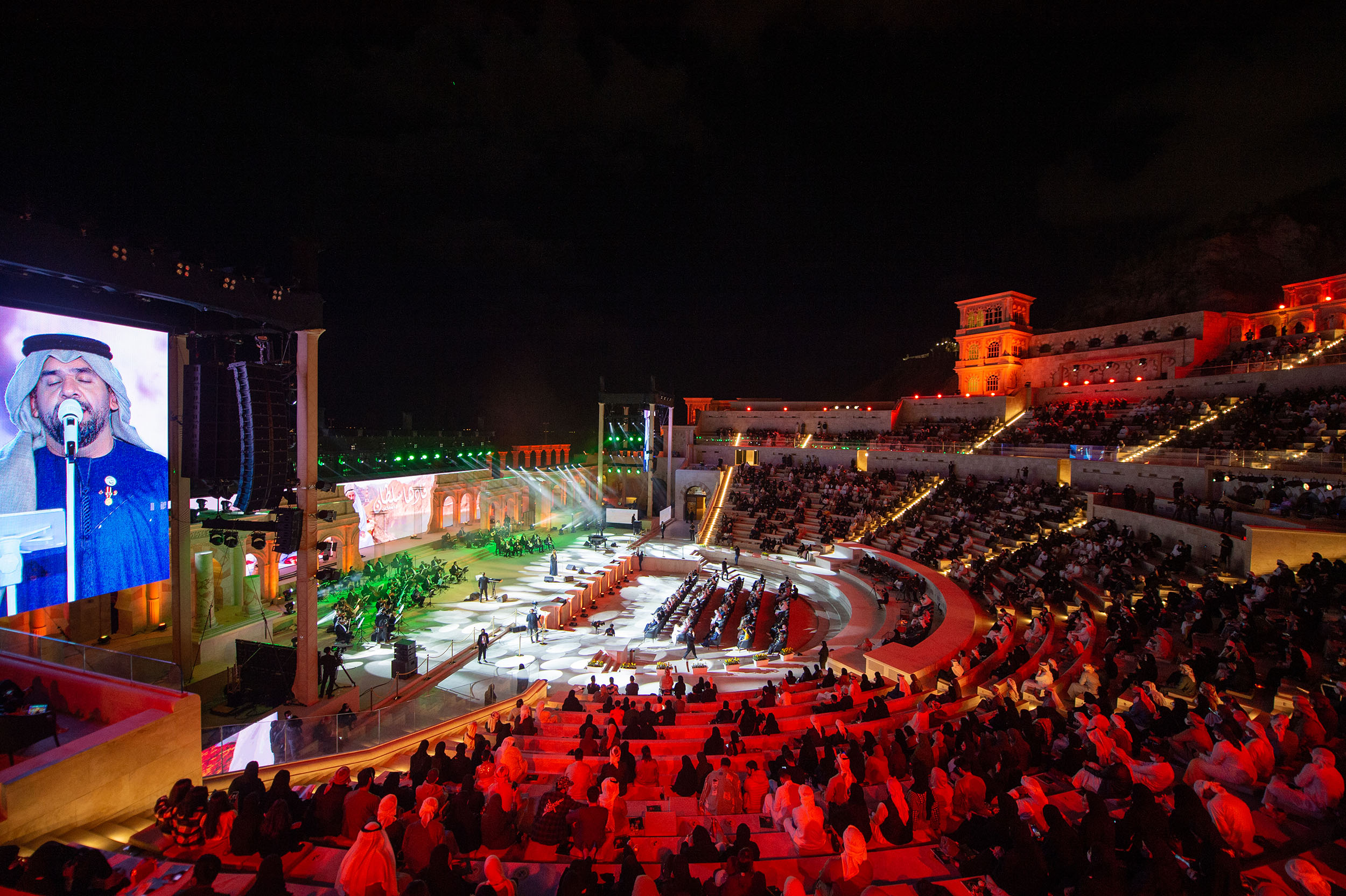 خورفكان/الشارقة - الأمة برس - ليلة تاريخية وإستثنائية، شهدتها مدينة خورفكان وأهلها في إستقبال إبنها البار الفنان حسين الجسمي "السفير المفوّض فوق العادة" مفتتحاً أولى الحفلات الغنائية في التحفة المعمارية الفنية الثقافية الراقية "مدرّج خورفكان"، ومستقبلاً العام الجديد 2021 على وقع إطلاق الألعاب النارية التي انطلقت بعد منتصف الليل وسط أجواء الفرحة الكبيرة بين الجمهور الحاضر في المدرّج من أهل المدينة وضيوفها الذين ضربوا أروع الأمثال في تطبيق الإجراءات الاحترازية والوقائية.
