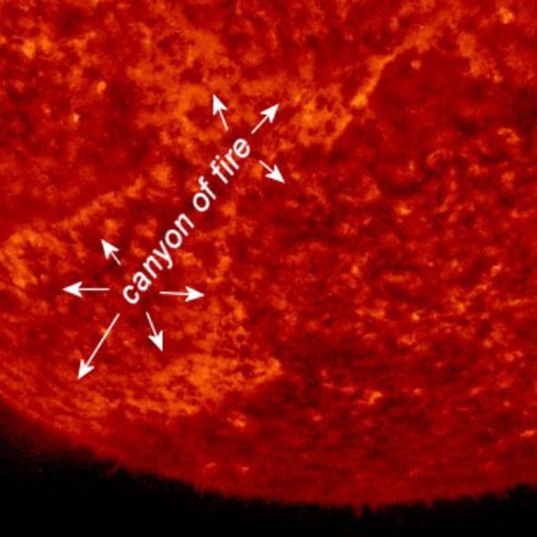 وأضاف الموقع: "ترسم الجدران المتوهجة للوادي القناة التي تم فيها تعليق الخيوط بواسطة قوى مغناطيسية، قبل أن تصبح غير مستقرة وتنفجر. ويمتد الهيكل من البداية إلى النهاية لأكثر من 400 ألف كيلومتر. وبعد فترة وجيزة من الثوران، رأت الصور الملتقطة من قبل المرصد الشمسي والهيليوسفير (SOHO) سحابة من الحطام تتصاعد بعيدا عن الشمس".