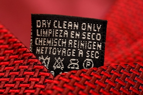 وفقاً لاستشاري الغسيل ريتشارد نيل، غالباً ما يتم لصق ملصقات التنظيف الجاف على الملابس كإجراء احترازي. وقال نيل لصحيفة ديلي ميل: "غالباً ما يتم وضع ملصقات التنظيف الجاف فقط على أنها حل يناسب جميع قطع الملابس من قبل الشركات المصنعة".