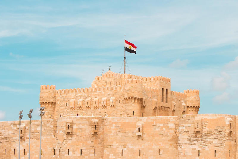 ارتفعت القلعة في سنة 1477 م. بأمر من السلطان الأشرف سيف الدين قايتباي، وذلك على ساحل البحر الأبيض المتوسط، وتحديداً على الجانب الشرقي من الطرف الشمالي لجزيرة "فاروس". كانت جهود قايتباي منصبة على المنظر الدقيق لمنارة الإسكندرية، بيد أن القلعة عرفت أضرارًا جسيمة، أثناء القصف البريطاني على الإسكندرية، وبالتالي فإن القلعة الحالية ليست تلك الأصلية. وهناك، ينصح الزائرون بالمرور بـ"المتحف البحري"، واستكشاف الجزء الداخلي من القلعة للحصول على لمحة عن الهيكل الضخم الذي كان قائمًا في يوم من الأيام.